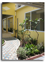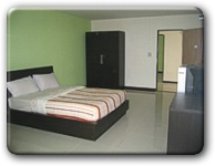 We have 75 rooms which is clean and fully furnished. The area of room is approximately 30 SQ.M. (4 m x 7.5 m) including bathroom and balcony. Room rate is in range between 3,200 – 4,000 baht per month. If you would like to make a reservation for the room or need more details, please feel free to contact us by phone, fax or email.